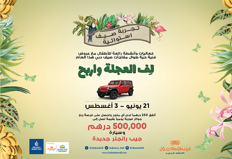 اربحوا جوائز مذهلة في ابن بطوطة مول خلال مفاجآت صيف دبي بقيمة 500,000 درهم وسيارة جيب رانجلر الجديدة